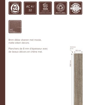 Thysfloor laminaat. 8mm dikke vloeren met mooie, matte eiken decors.