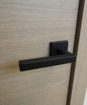 Deze moderne zwart gepoederlakte deurkruk geeft een strakke look aan uw interieur.