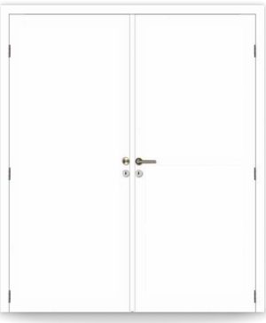 Dubbele deur met stevige tubespaan kern (32 dB akoestisch isolerend), geleverd in plaatsklare kit.