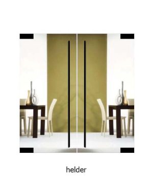 Dubbele pivoterende glasdeur (taats) in 8 mm veiligheidsglas. Makkelijk in onderhoud.