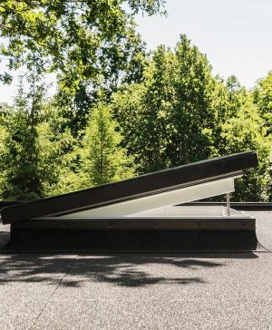 Dit VELUX platdakvenster wordt door ons geleverd in een plaatsklare kit (vlak beschermglas ISU 2093 + elektrische basiseenheid CVU 0220Q).