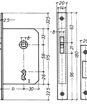 LITTO A7159 – Haakslot met gewone sleutel met vierkante, gelakte voorplaat.