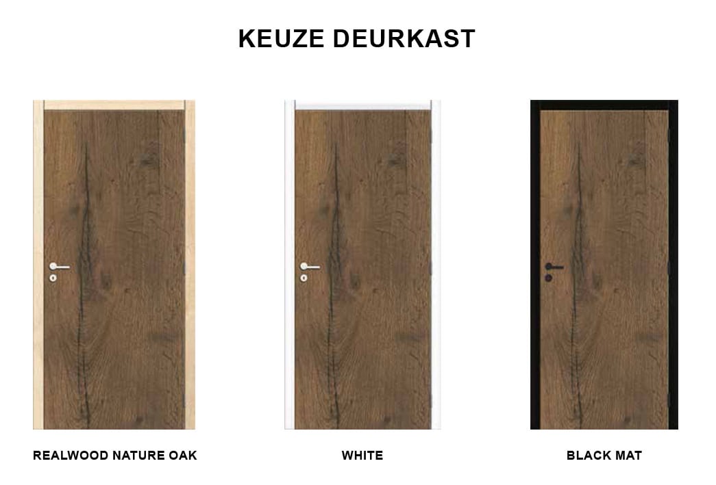 • Deurbeslag: sleutelslot (BBT) & scharnieren (inox scharnieren en slot bij de ‘Realwood Nature Oak’ en ‘White’ deurkast en zwarte scharnieren en slot bij de ‘Black Mat’ deurkast)
