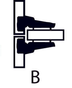 Er zijn, zoals te zien is op de afbeelding, drie mogelijke posities van het kastdeurtje en daarmee drie corresponderende scharnieren: opliggend (A), half opliggend (B) of binnenliggend (C). Houd daarom vooraf rekening met de positionering van de deur ten opzichte van de kastwand.
