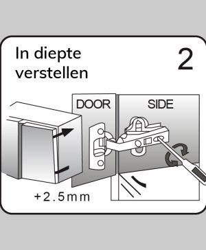 Voor de montage heb je een pot- of forstnerboor nodig om het gat in het deurtje te boren. Na montage is het scharnier eenvoudig bij te stellen en ook na veelvuldig gebruik stel je jouw keukenkastdeurtje met hetzelfde schroefje nog eenvoudig bij.