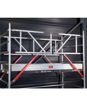 De RS TOWER 54 is een handige kamersteiger. Geschikt voor buiten. Ideaal voor binnen door zijn compacte formaat. Wil je ooit hoger komen? Het systeem is uit te breiden met componenten uit de RS TOWER 5-serie. Zo kun je deze kamersteiger zelfs eenvoudig uitbouwen tot een werkhoogte van 8.80 meter.