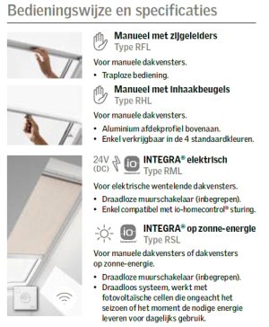 Er zijn 4 keuzemogelijkheden om uw VELUX lichttemperend rolgordijn te bedienen: