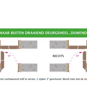 Bijzonder aan deze deur is dat het een naar buiten draaiende deur is. M.a.w het is een deur met een inverse draairichting (zie foto).