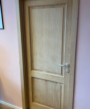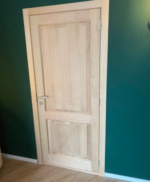 Moulura eiken deur. Deze deur werd geselecteerd om haar eenvoud van installatie, eenvoud van onderhoud & milieuvriendelijkheid.