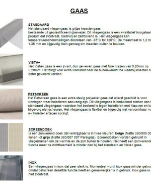 Muggengaas. Keuze uit standaard muggengaas, Vista+ gaas, Petscreen, Screendoek of inox muggengaas. Klik hier voor meer info!