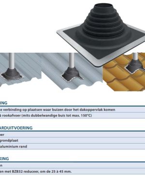 Doorsnede bovenaan te kiezen (Ø 75 – 150 of Ø 115 – 175 of Ø 125 – 230)