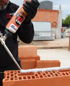 Gecertificeerd polyurethaan lijmschuim voor dragende muren met vlakgeslepen keramische snelbouw- (holle bouwsteen), silicaat-, cellenbeton- en betonlijmsteen van hoge maatnauwkeurigheid.