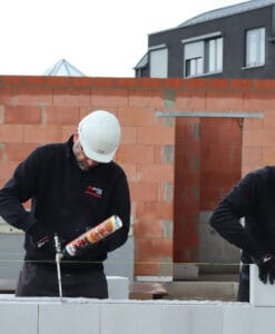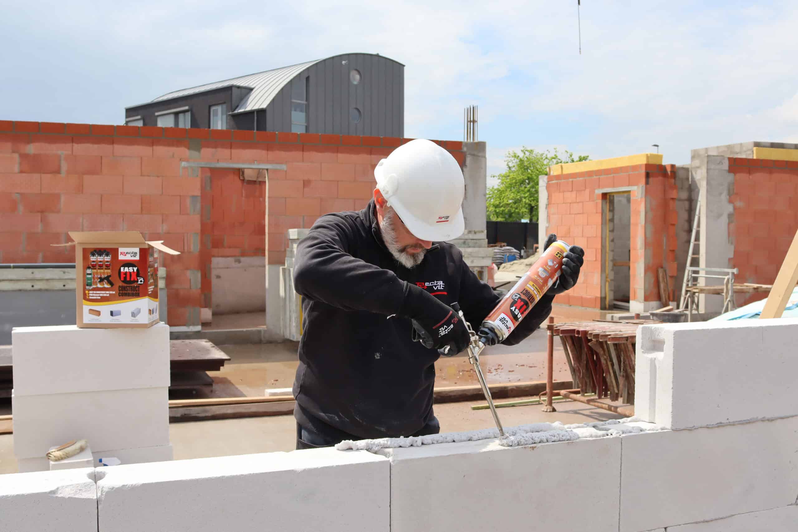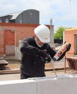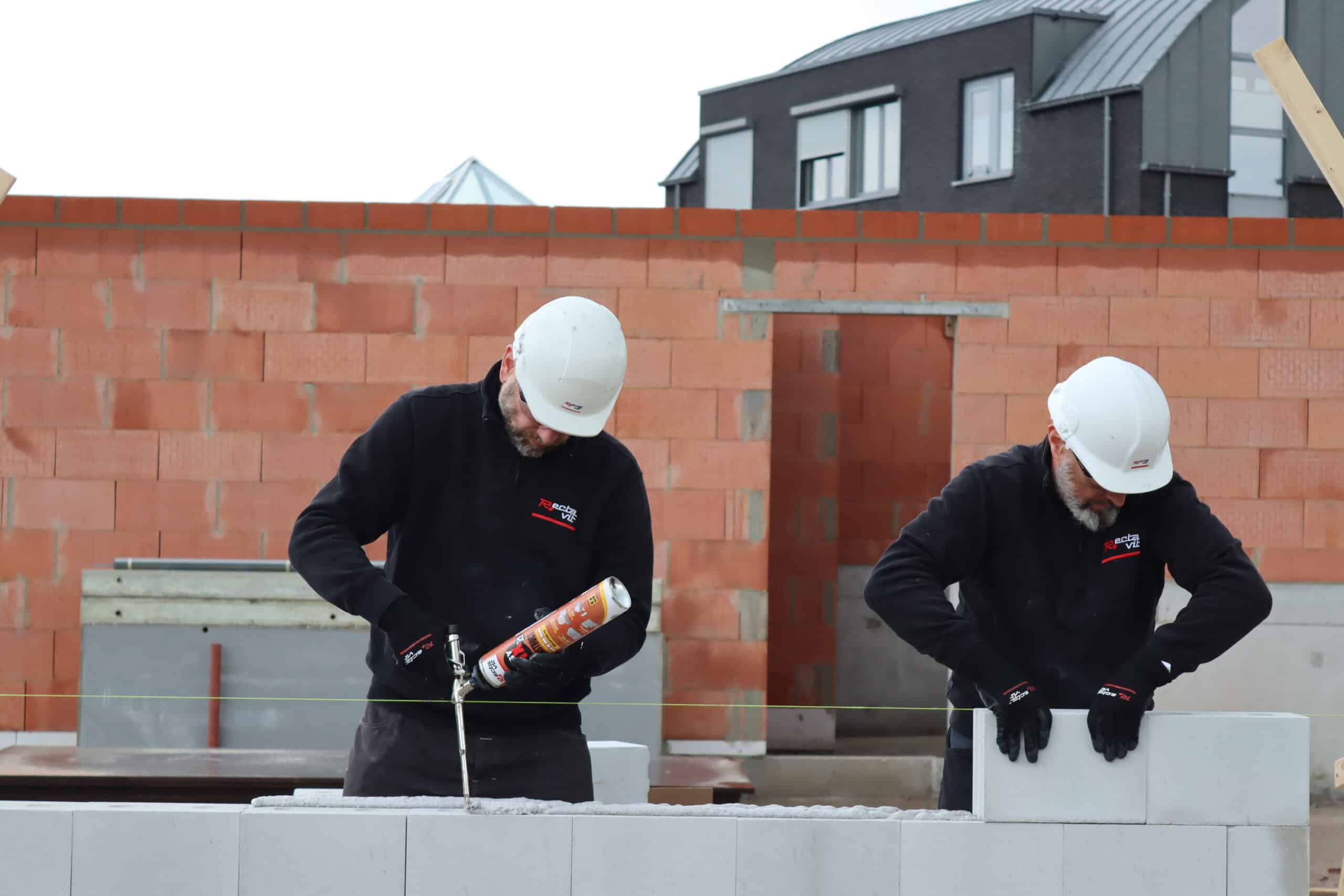 • Verlijmen van draagmuren met vlakgeslepen keramische snelbouw- (holle bouwsteen), silicaat- en cellenbeton- en betonlijmsteen van hoge maatnauwkeurigheid