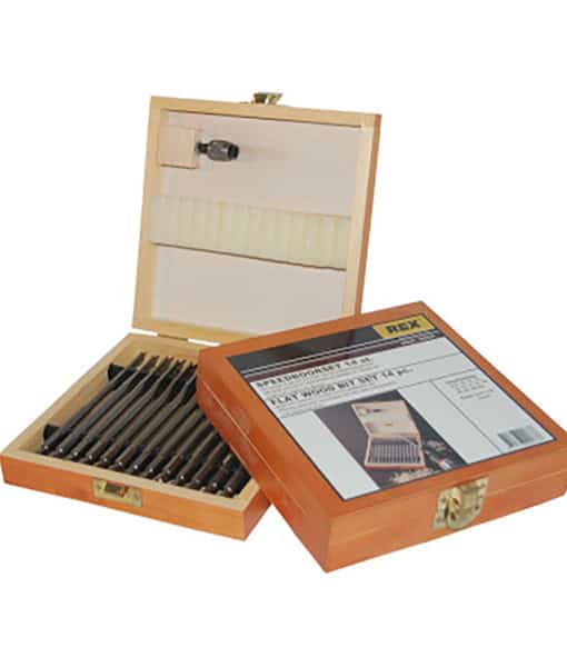 Rex® 14-delige set speedboor standaard Ø6 – 25mm + Quick-Lock adapter in houten koffertje