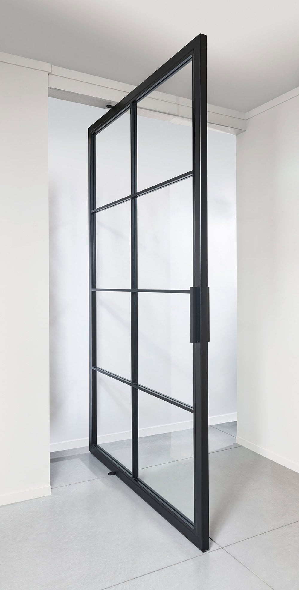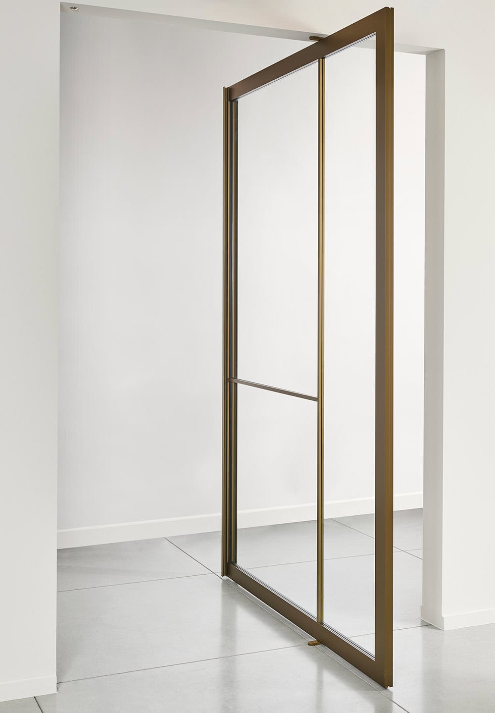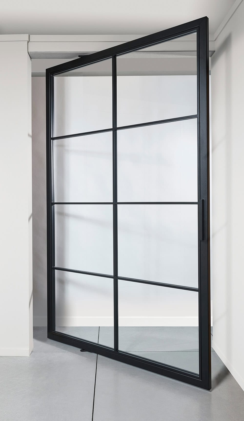 Bij Areco maken we ook room dividers volledig op maat, perfect afgestemd op uw interieur en afmetingen. Kies uit staal of aluminium, verschillende glasopties, glasverdelingen en kleuren. Dankzij de onzichtbare pivot krijgen onze room dividers een minimalistische en elegante uitstraling.