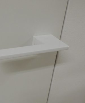De rozet loopt gelijk met de deurkruk wat een strakke lijn creëerd.