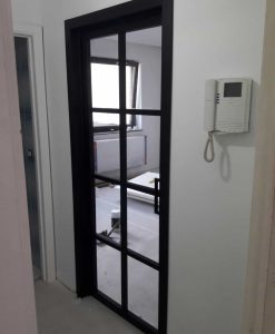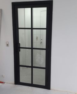 Het Thys deurgeheel “Steel Look Feeling” is een afgewerkte deur die u niet meer hoeft te schilderen of oliën. Deze deur heeft een minimalistisch en aantrekkelijk design met extra smalle en strakke profielen van 65 mm gecombineerd met 8 mm veiligheidsglas.