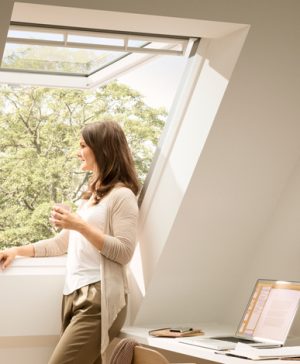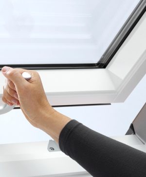 De perfecte keuze als het dakvenster zich binnen handbereik bevindt. Dakvenster met bediening onderaan het kozijn. Dit dakvenster zorgt voor een volledig en open uitzicht op de horizon, want het scharniert aan de bovenzijde en opent naar buiten toe open.