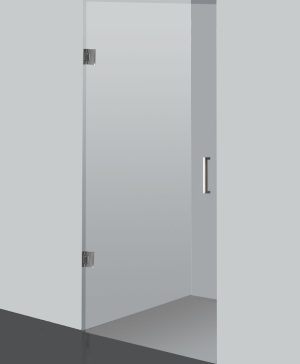 Doorslaande douchedeur in 8 mm grijs gerookt veiligheidsglas. Makkelijk in onderhoud.