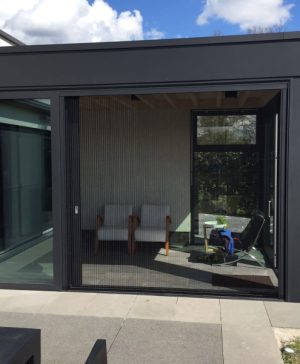 Plissé vouwhordeur op maat gemaakt en verkrijgbaar in alle RAL-kleuren. De plissé is een nieuw alternatief voor de schuifvliegendeur. Een plissé vouwhordeur kan zowel van links naar rechts als van rechts naar links geplaatst en gebruikt worden. Onze plissés zijn beschikbaar met een maximale hoogte van 2990 mm en maximale breedte van 2900 mm.