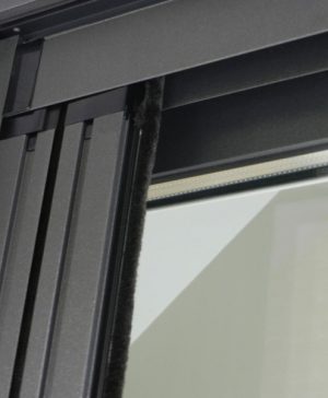 De bovengeleider bestaat uit een U-vormig aluminium profiel en onder glijdt de plissé vouwhordeur over een laag drempeltje van slechts 3 mm.