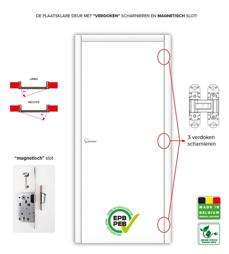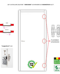 EEN PLAATSKLARE DEUR MET ”VERDOKEN” SCHARNIEREN EN MAGNETISCH SLOT!