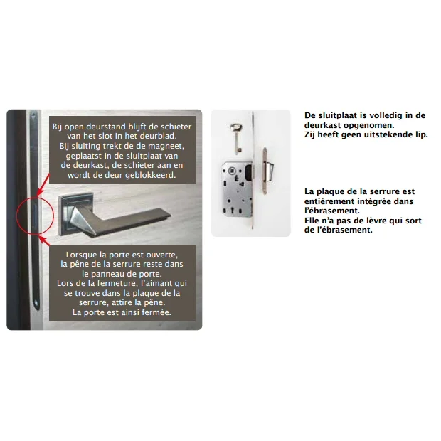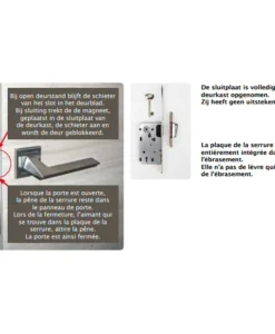 Het deurbeslag zoals het magnetische slot en de verdoken scharnieren zijn ook inbegrepen. Deurkruk niet inbegrepen!